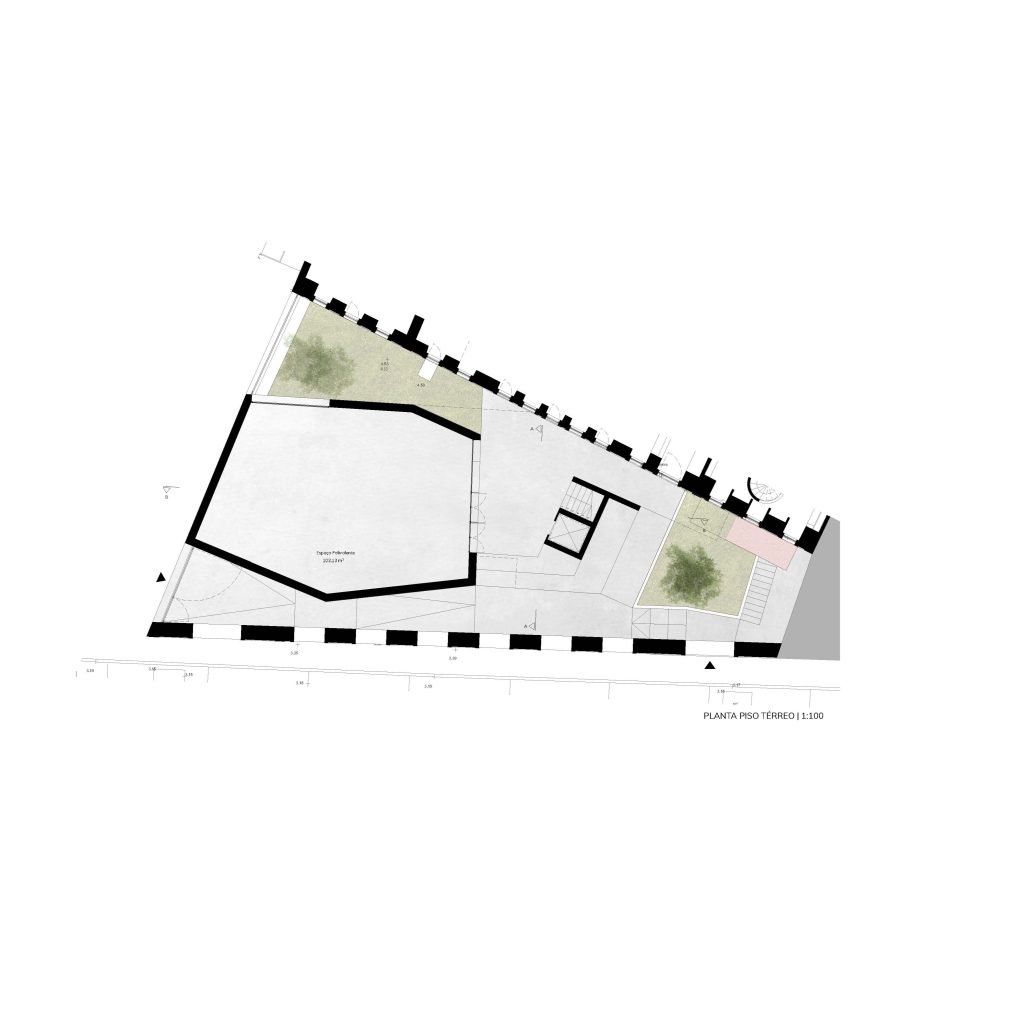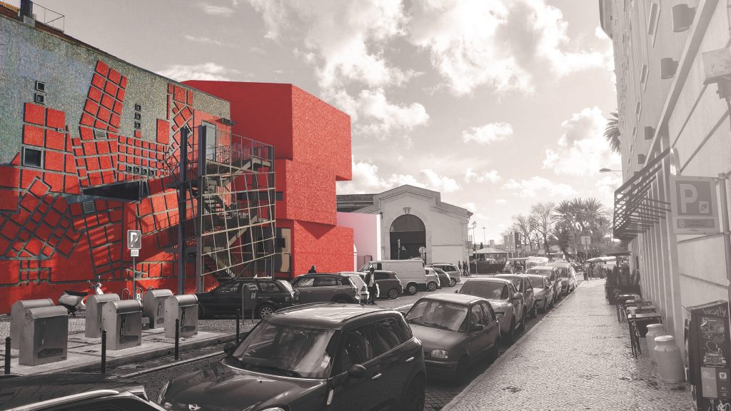 Um edifício/objeto que surge de forma livre no espaço entre o volume compacto da sede e a forma laminar da fachada a preservar na Rua da Ribeira Nova, dando a cada elemento o seu lugar e libertando espaço no plano de apoio.
