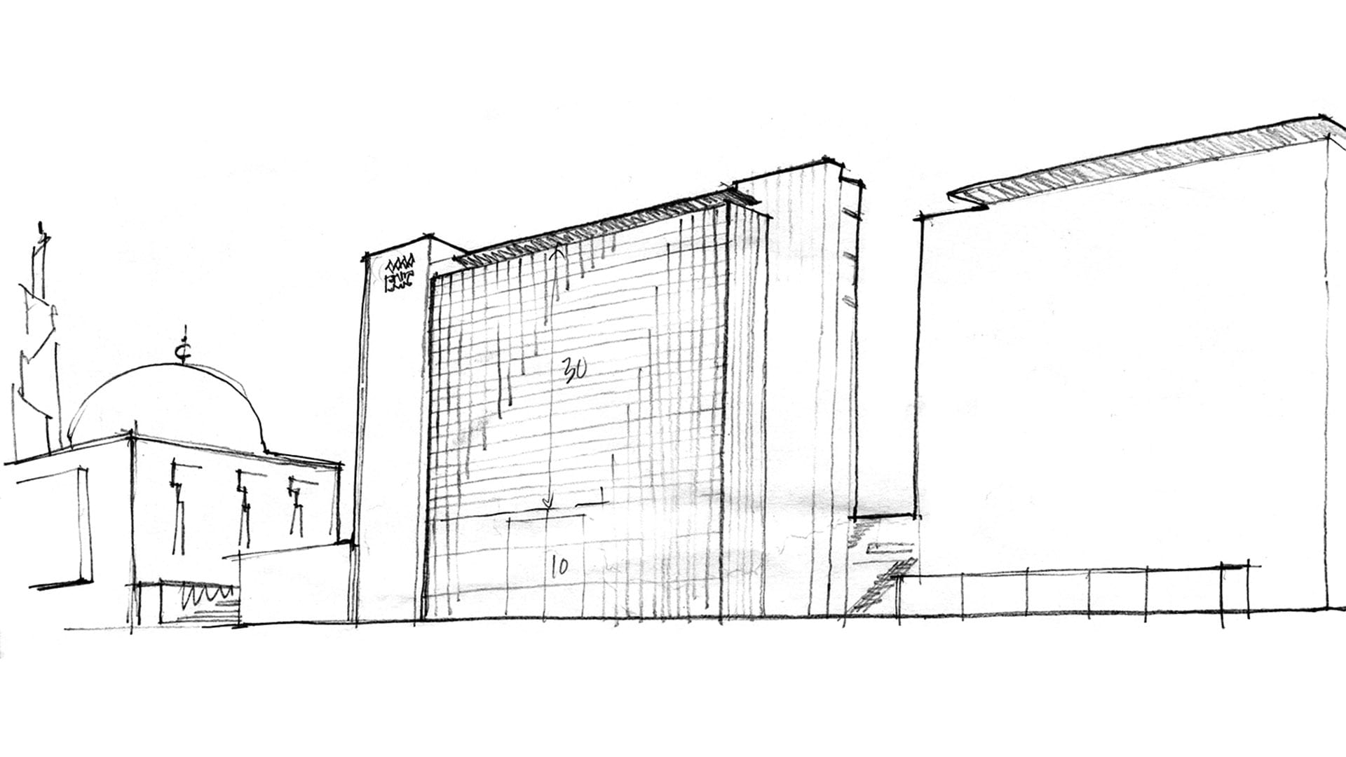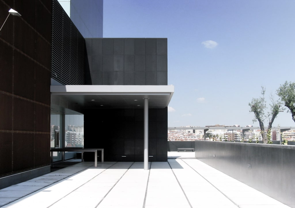 No topo Nascente da Av. José Malhoa, o edifício sede do BNC – Banco Nacional de Crédito Imobiliário, SA tem grande visibilidade pela sua dimensão e posição, sobretudo em relação ao grande espaço aberto da Praça de Espanha. Entre os núcleos localizados nos topos do corpo vertical do edifício e ligados no andar superior por um volume horizontal, o grande painel central em vidro, aparece suspenso sobre o átrio de entrada, negativo do corpo horizontal, mirante sobre a Praça de Espanha, e elemento de transição para a Mesquita.