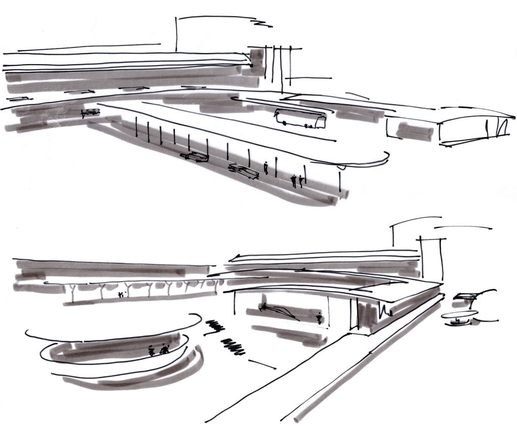 Projecto para reformulação do Curbside de Partidas e interface de ligação à estação Metro Aeroporto, no âmbito do Plano de Desenvolvimento do Aeroporto de Lisboa, abrangendo o reordenamento da praça de acesso, a remodelação da fachada Sul da Aerogare (não executada), e um conjunto de áreas funcionais e acessos.